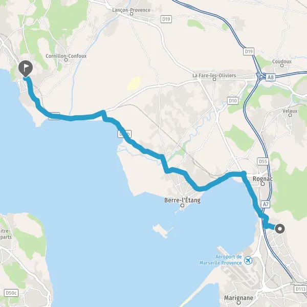 Au rond-point, prendre la 2ème sortie sur D21b (Route de Saint-Chamas) et continuer sur 4,1 kilomètres