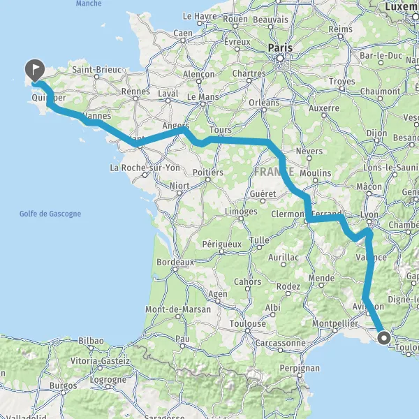 Prendre à droite et rejoindre A85 E604. Continuer sur 205 kilomètres