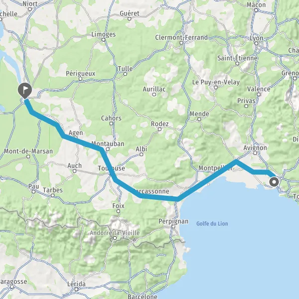 Prendre à droite et rejoindre A61. Continuer sur 136 kilomètres