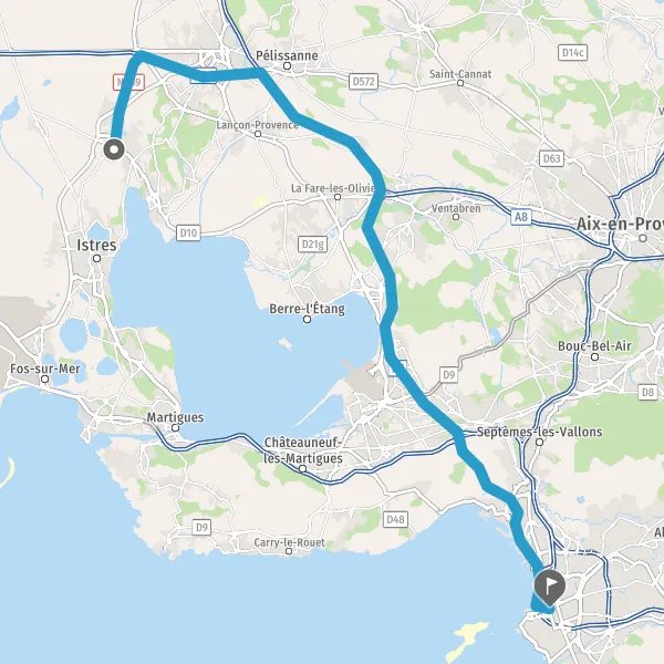 Au rond-point, prendre la 1ère sortie sur D21b (Route de Saint-Chamas) et continuer sur 2,3 kilomètres