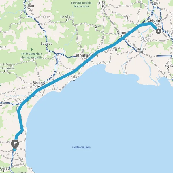Prendre à droite et rejoindre A9 E15. Continuer sur 57 kilomètres