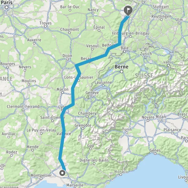 Prendre à droite et rejoindre A36 E60. Continuer sur 185 kilomètres