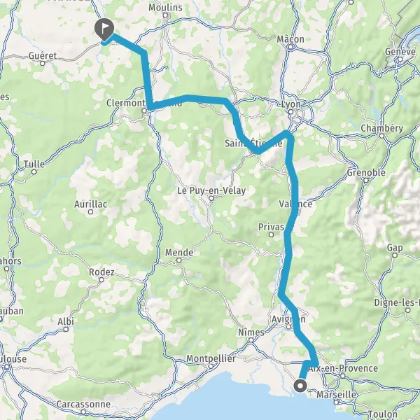 Prendre à droite et rejoindre A72. Continuer sur 53 kilomètres