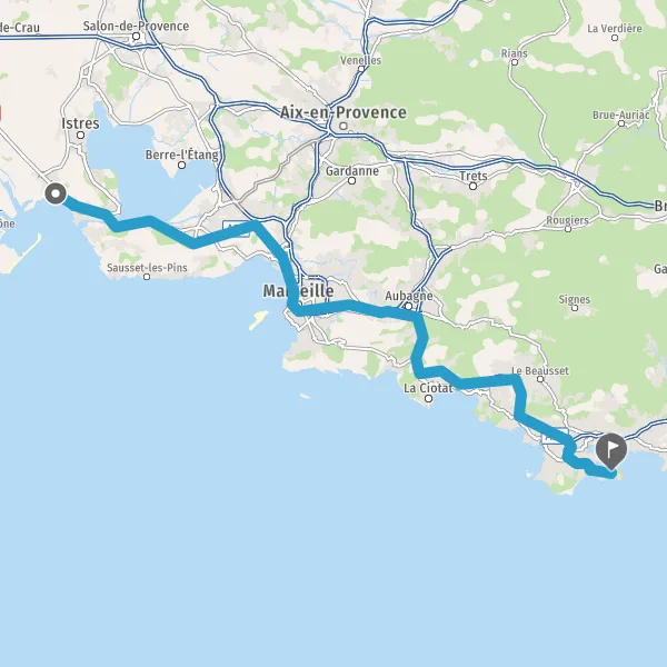 Payer 3,30 € (Péage Tunnel Prado Carénage) Payer 2,60 € (Péage La Ciotat) Payer 2,60 € (Péage Bandol) 47,5 km