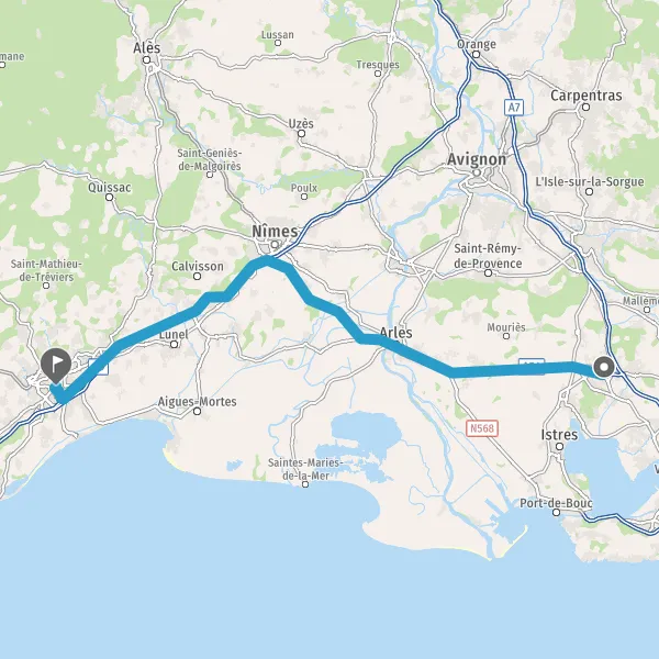 Au rond-point, prendre la 2ème sortie sur Rue de l'Abrivado et continuer sur 450 mètres