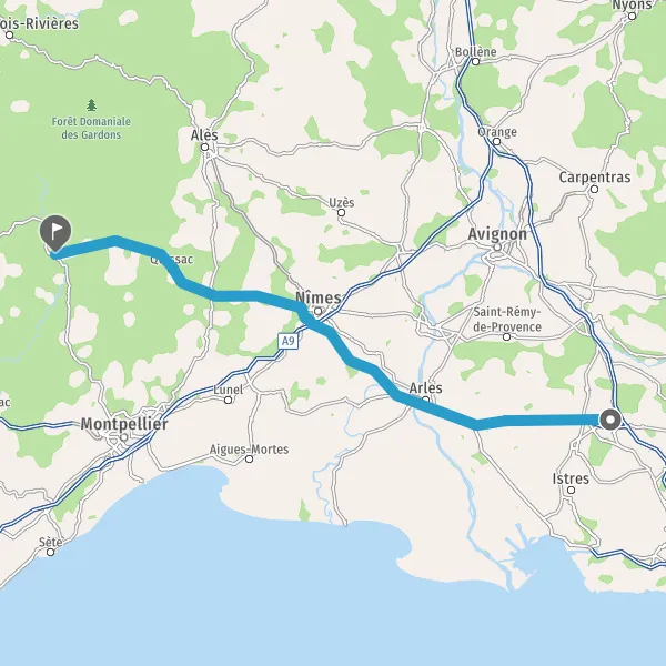 Au rond-point, prendre la 2ème sortie sur D999 (Route de Nîmes) et continuer sur 1,7 kilomètre