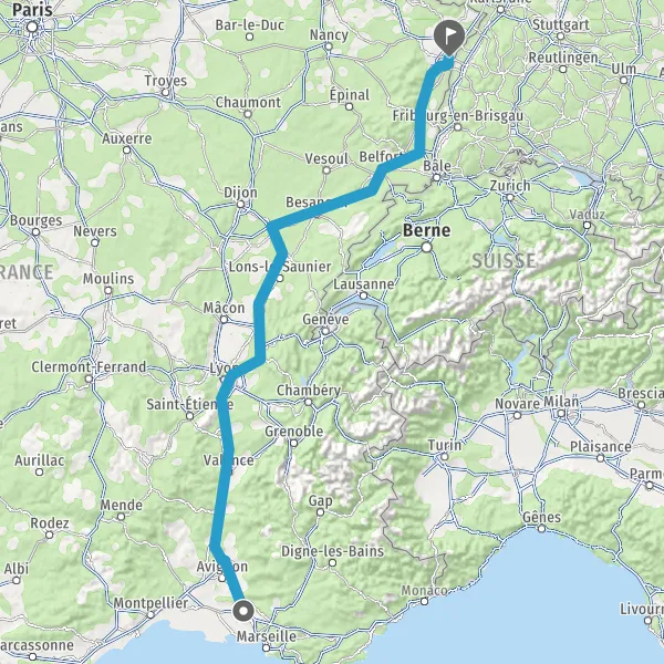 Prendre à droite et rejoindre A36 E60. Continuer sur 185 kilomètres