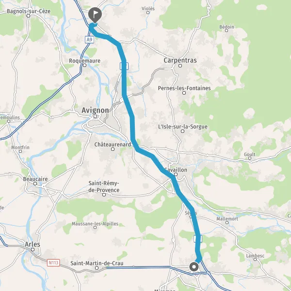 Au rond-point, prendre la 2ème sortie sur N7 (Route d'Avignon) et continuer sur 950 mètres