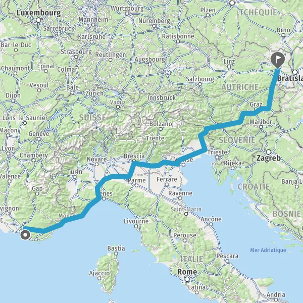Prendre à droite et rejoindre A8. Continuer sur 154 kilomètres
