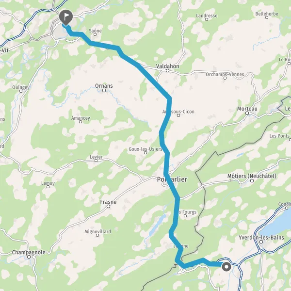 Entrer en France et prendre N57 E23 (Route de Vallorbe) sur 4,9 kilomètres
