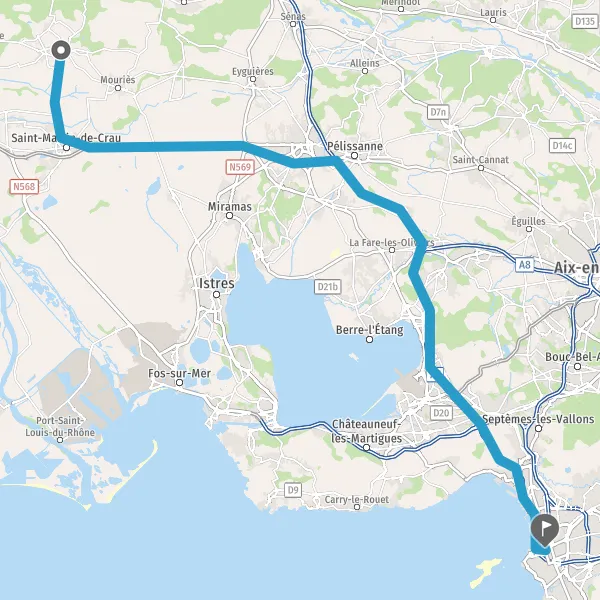 Avec le mode voiture, vous pouvez configurer vos options (type de véhicule, autoroute ou non, péage ou non, distance la plus courte), tout en ayant accès aux infos de circulation grâce à notre service d'info-trafic en temps réel. Ainsi faites des économies sur le coût ou la durée de votre voyage, en trouvant le trajet Maussane-les-Alpilles Marseille adapté à vos besoins.