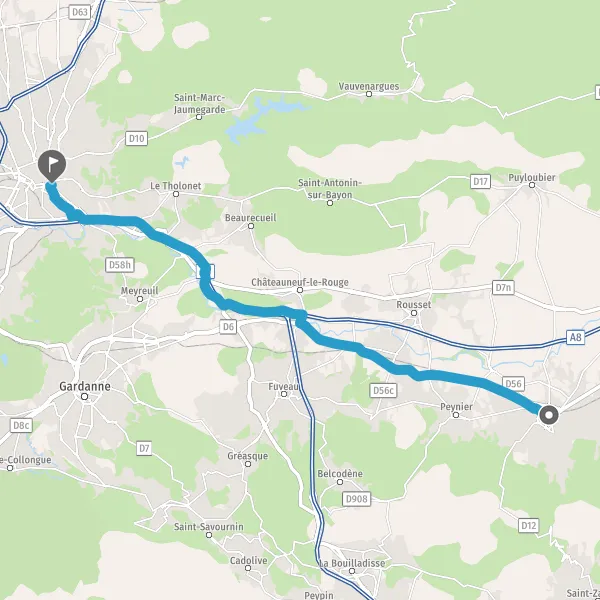 Tourner légèrement à droite sur D6 (Route de Gardanne) et continuer sur 1,5 kilomètre