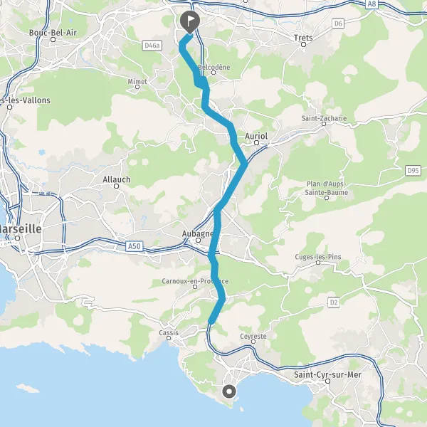 A50AubagneMarseilleAix-en-ProvenceLa Seyne-sur-MerToulon