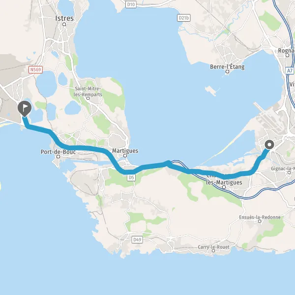 Au rond-point, prendre la 2ème sortie sur D9 (Route de Martigues) et continuer sur 1,1 kilomètre