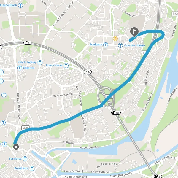 | Distance en voiture | 3,9 km à 4,7 km |