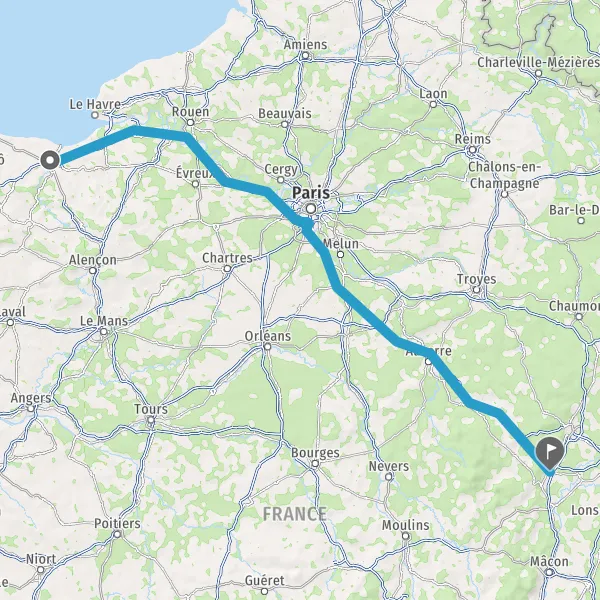 Prendre à gauche et rejoindre A6. Continuer sur 291 kilomètres