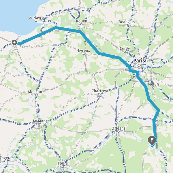 Prendre à droite et rejoindre A13. Continuer sur 199 kilomètres