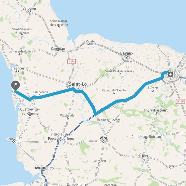 Au rond-point, prendre la 2ème sortie sur D972 (Route de Coutances) et continuer sur 2,6 kilomètres