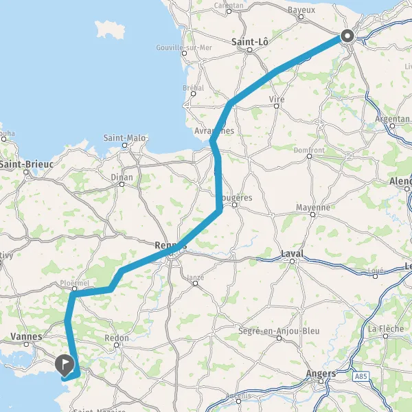 Prendre à droite et rejoindre A84 E401. Continuer sur 165 kilomètres