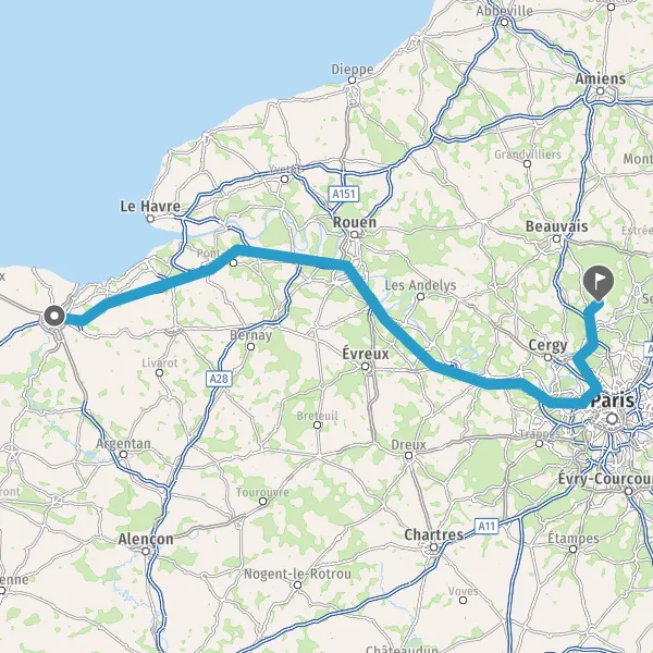 Prendre à droite et rejoindre A13. Continuer sur 199 kilomètres