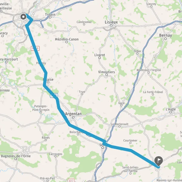 Au rond-point, prendre la 2ème sortie sur D912 (Route d'Alençon) et continuer sur 1 kilomètre