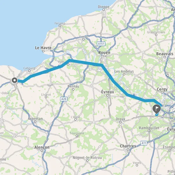 Prendre à droite et rejoindre A13. Continuer sur 198 kilomètres