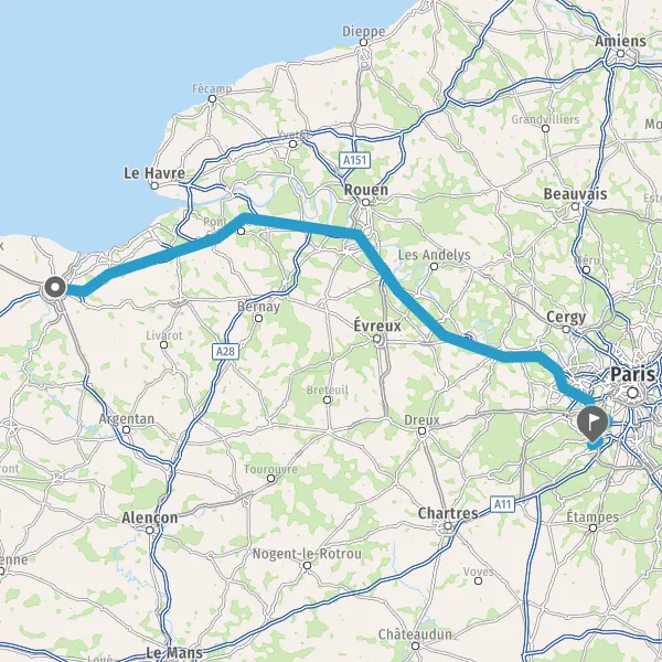 Prendre à droite et rejoindre A13. Continuer sur 199 kilomètres