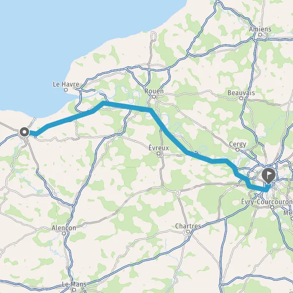 Prendre à droite et rejoindre A13. Continuer sur 130 kilomètres