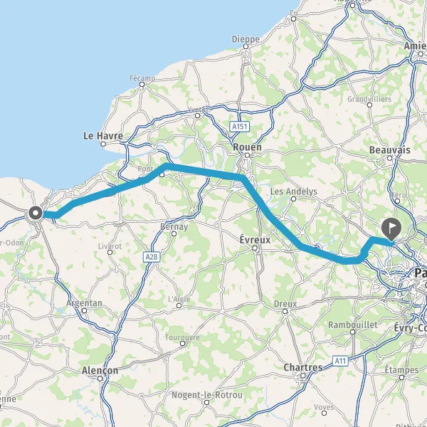 Prendre à droite et rejoindre A13. Continuer sur 187 kilomètres