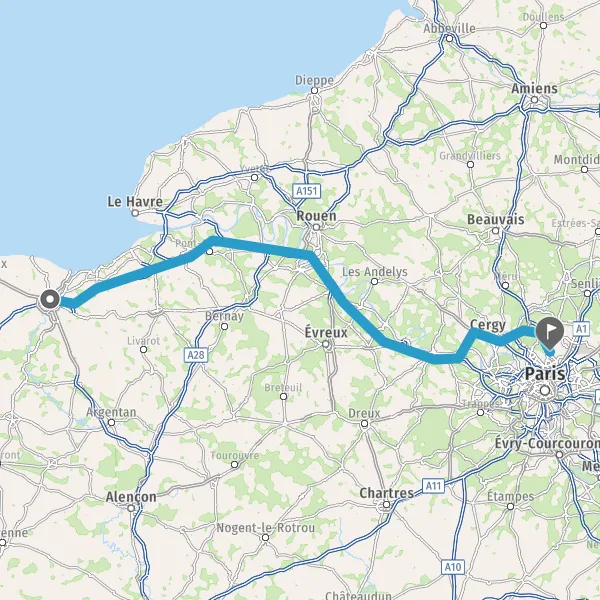 Prendre à droite et rejoindre A13. Continuer sur 199 kilomètres