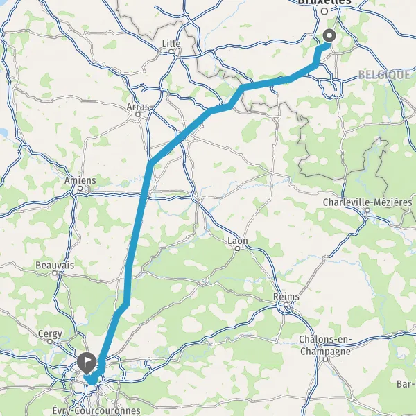 Continuer A1 A1 E19 E15 sur 120 kilomètres