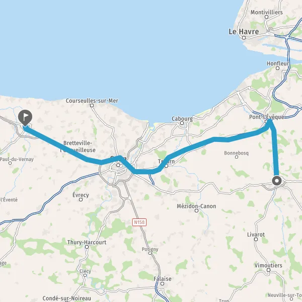 Au rond-point, prendre la 1ère sortie sur D613a (Route de Caen) et continuer sur 2,8 kilomètres