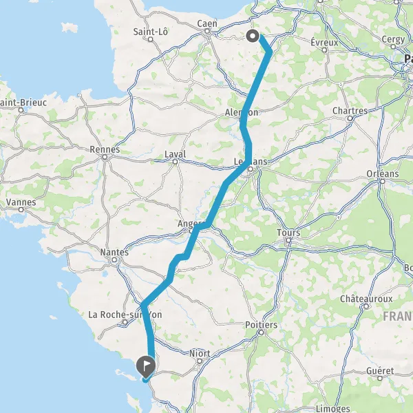 Prendre à gauche et rejoindre A83 E3. Continuer sur 33 kilomètres