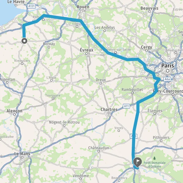 Prendre à droite et rejoindre A13. Continuer sur 158 kilomètres