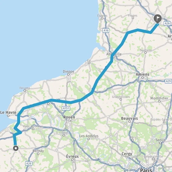 Prendre à droite et rejoindre A29. Continuer sur 26 kilomètres