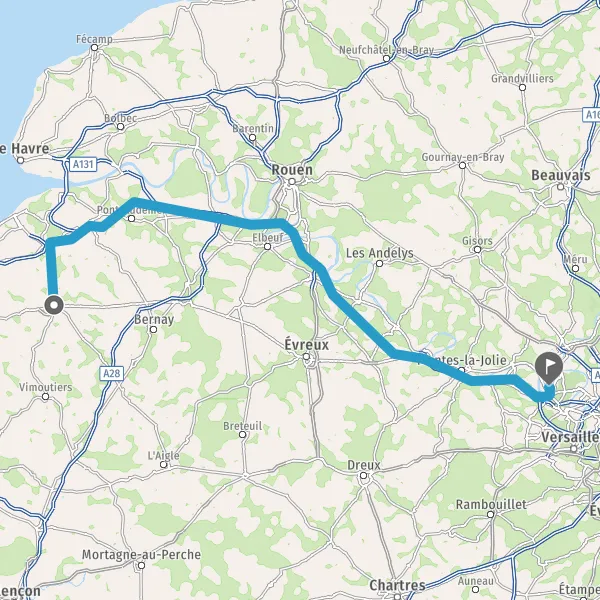 Prendre à droite et rejoindre A13. Continuer sur 28 kilomètres