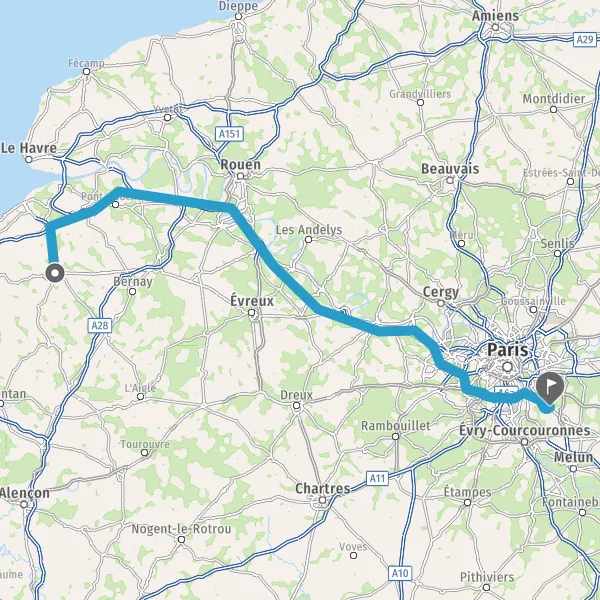 Prendre à droite et rejoindre A13. Continuer sur 158 kilomètres