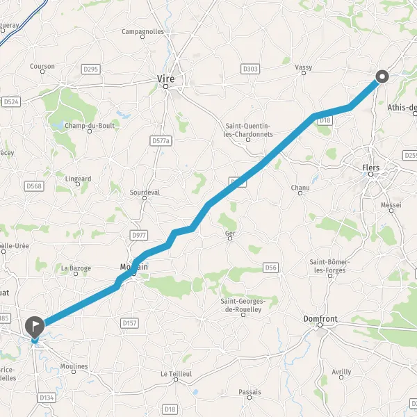 Au rond-point, prendre la 1ère sortie sur D911 D511 (Route de Tinchebray) et continuer sur 14 kilomètres