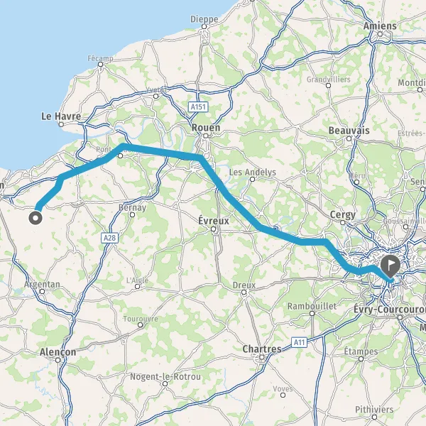 Prendre à droite et rejoindre A13 E46. Continuer sur 97 kilomètres