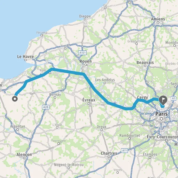 Prendre à droite et rejoindre A13 E46. Continuer sur 166 kilomètres