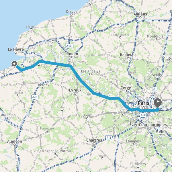Continuer et rejoindre A13 E46. Continuer sur 158 kilomètres