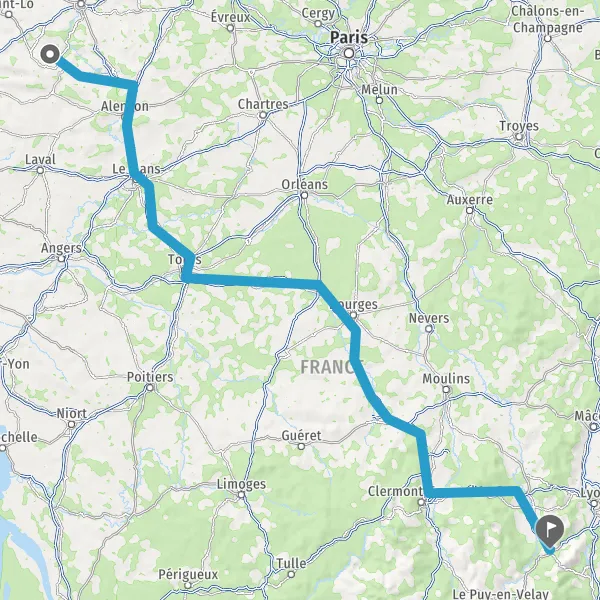 Continuer E11 (L'Arverne) sur 206 kilomètres