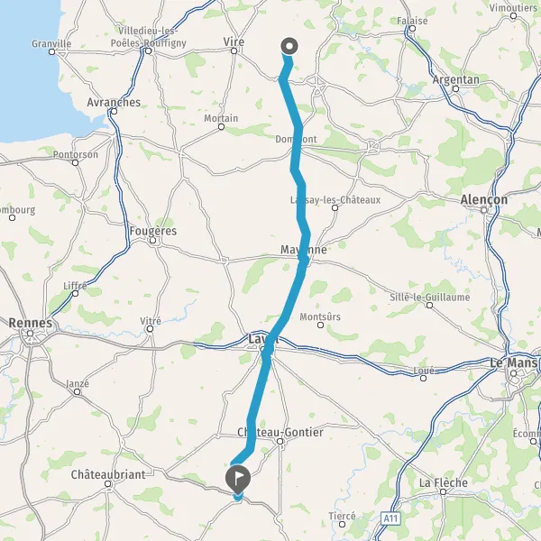 Continuer D54 (Rue de Domfront) sur 11 kilomètres