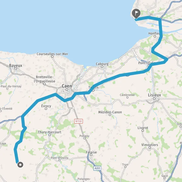 Prendre à droite et rejoindre A84 E401. Continuer sur 21 kilomètres