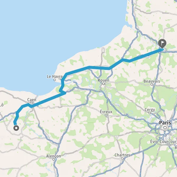 Prendre à droite et rejoindre A84 E401. Continuer sur 21 kilomètres