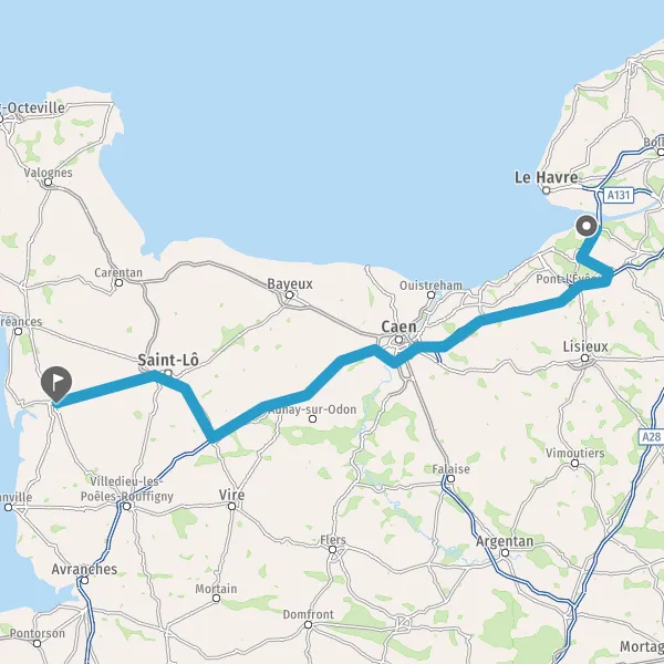 Prendre à droite et rejoindre A84 E401. Continuer sur 45 kilomètres