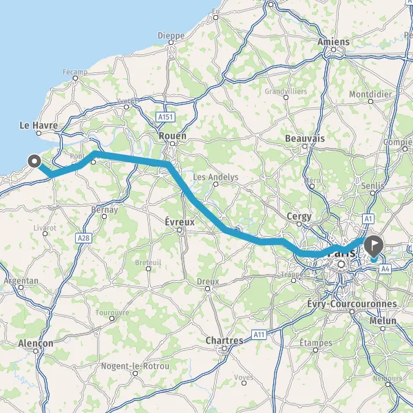 Continuer et rejoindre A13 E46. Continuer sur 158 kilomètres