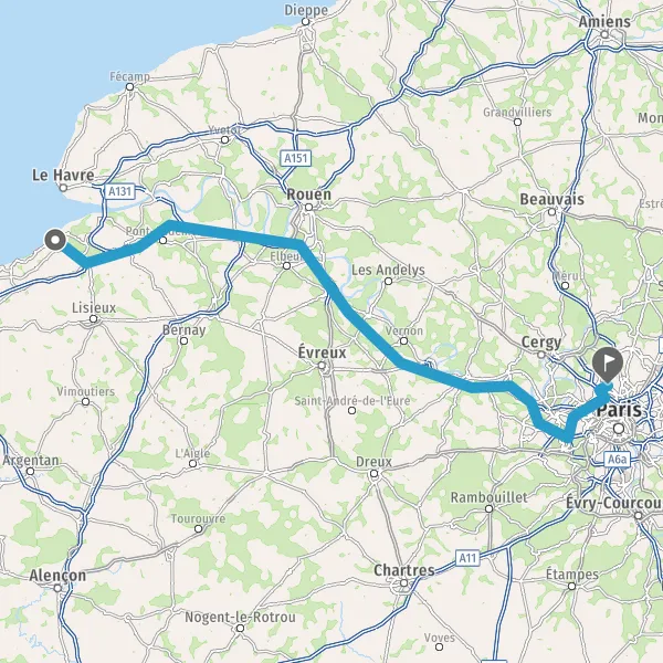 Continuer et rejoindre A13 E46. Continuer sur 158 kilomètres