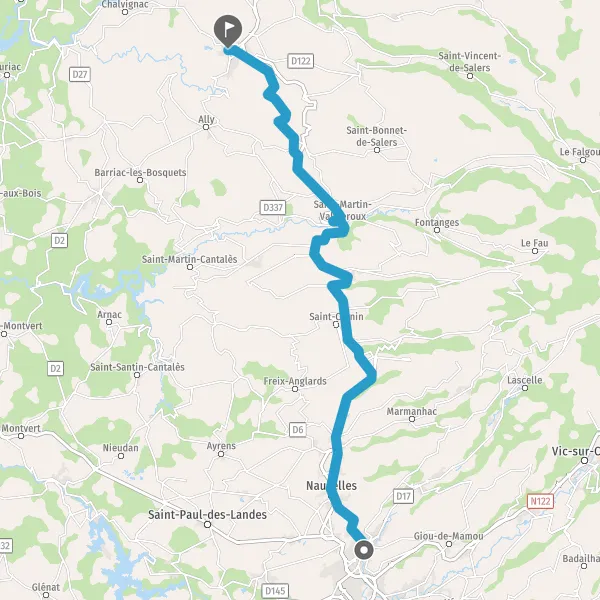 Tourner légèrement à droite sur D922 (Route de Mauriac) et continuer sur 4,4 kilomètres
