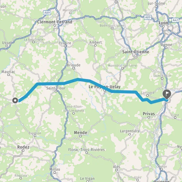Tourner à droite sur N102 (Route du Velay) et continuer sur 20 kilomètres